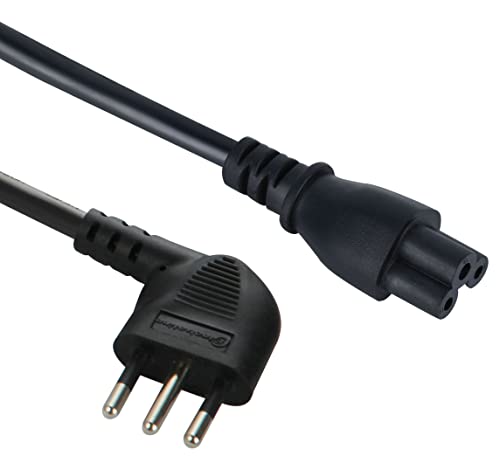 deleyCON 1m Nätkabel Strömkabel Skyddskontakt Kontakt Typ F (CEE 7/4) 90° Vinklad mot IEC C5 Uttag 2,5 Amp Klöverbladskoppling TV Monitor Skärm Bärbar Dator Nätaggreagat - Svart