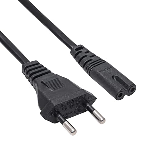 deleyCON 2m Nätkabel Strömkabel Skyddskontakt Kontakt Typ F (CEE 7/4) 90° Vinklad mot IEC C5 Uttag 2,5 Amp Klöverbladskoppling TV Monitor Skärm Bärbar Dator Nätaggreagat - Svart