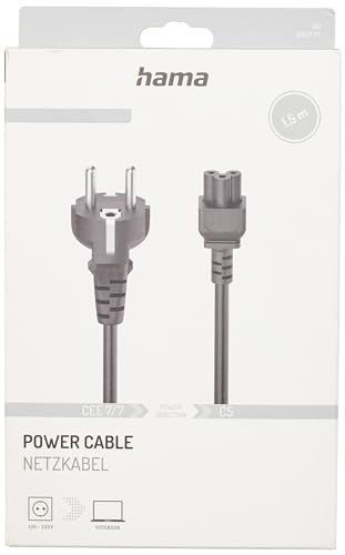Hama Nätströmskabel med jord (strömkabel för dator/anteckningsbok/TV, nätadapter, typ F-kontakt, 3-stifts klöverkontakt, 1,5 m, 10 års garanti) svart