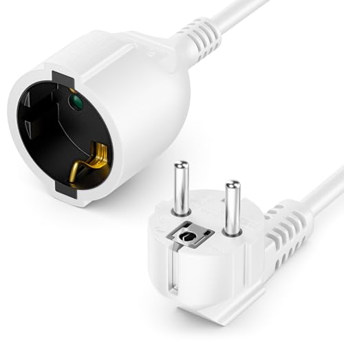 deleyCON 5m Förlängningskabel med F-Typ (CEE 7/4) 90° Vinklad till Kontakt (CEE 7/3) - Strömkabel för TV, PC, Dator, Videoprojektor - Vit