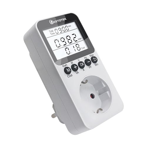 KETOTEK Strömmätare Energikostnadsmätare Elmätare för eluttag Strömförbrukare Wattmeter med LCD-skärm, Överbelastningsskydd, Maximal effekt 3680W