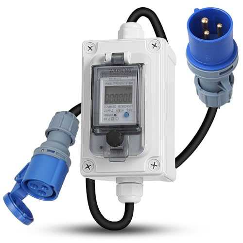 Swawis Mobil digital elmätare med CEE-kontakt 230 V IP67 strömmätare, KWH, elmätare, uttag med LED/återställning, strömmätare för husbilar, elfordon hushåll