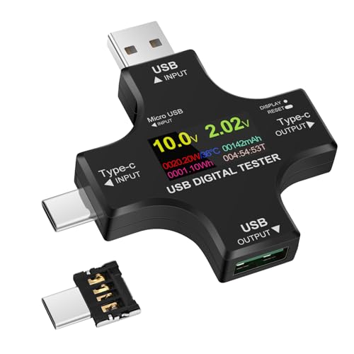YOJOCK USB Testare Strömmätare 2-i-1 Typ C USB Voltmeter Amperemätare Strömmätare, LCD Digital Multimeter, Spänning, Ström, Kapacitet, Temperatur, Arbetstidsdetektor med Typ C-adapter
