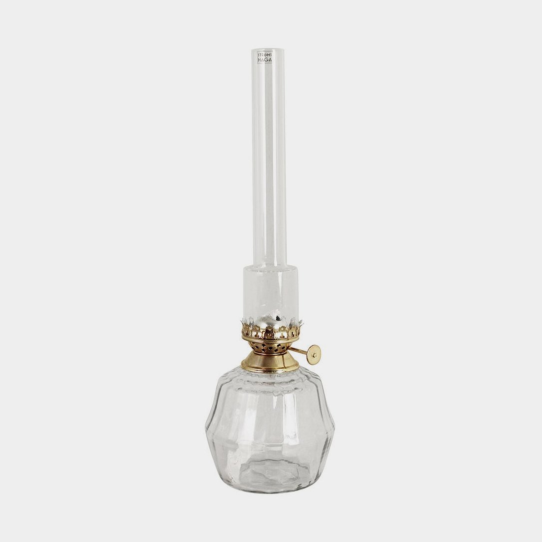 Fotogenlampa / oljelampa Strömshaga Britta Liten, klart glas, brännare i mässing, Ø75 mm x 250 mm