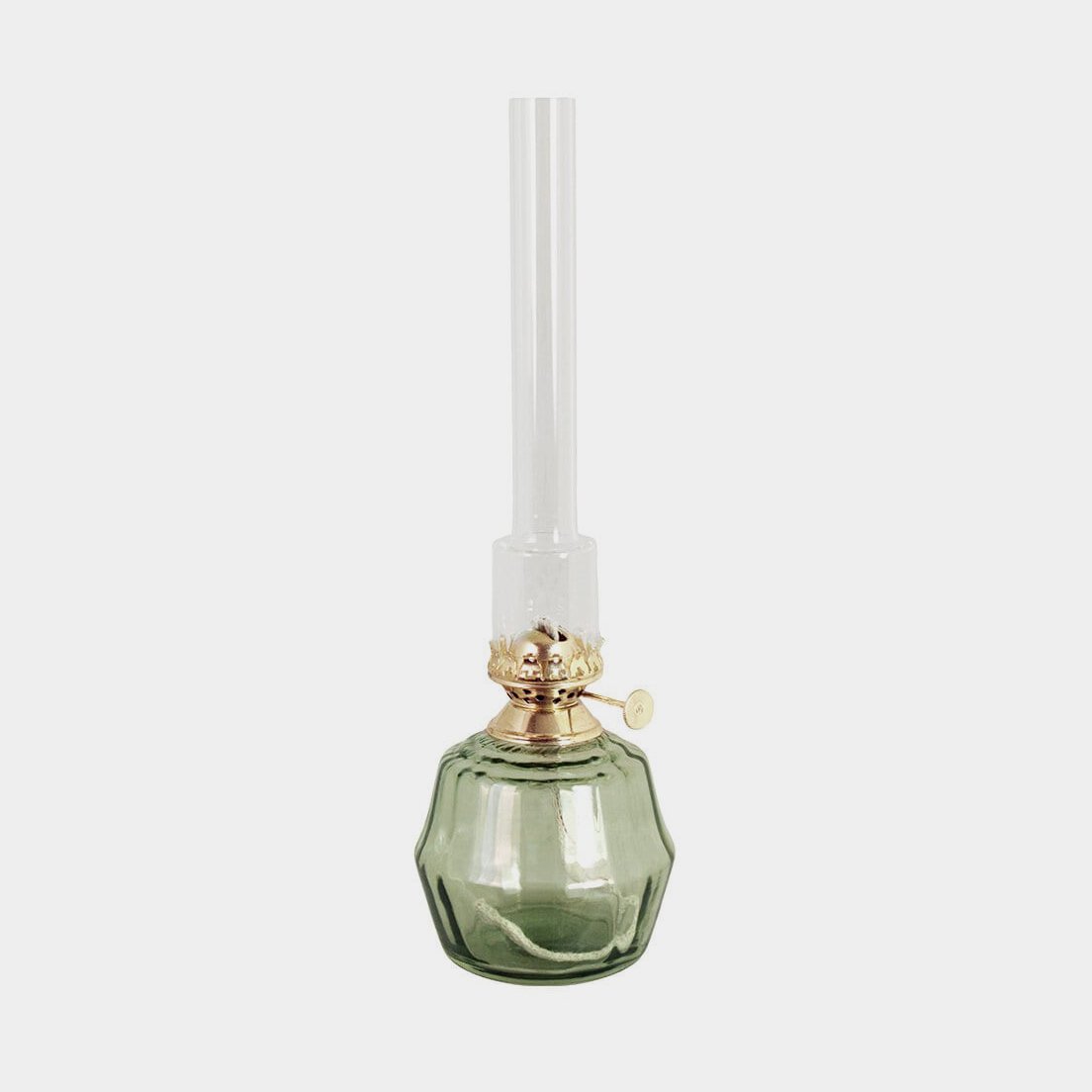 Fotogenlampa / oljelampa Strömshaga Elvira Liten, grönt glas, brännare i mässing, Ø75 mm x 250 mm