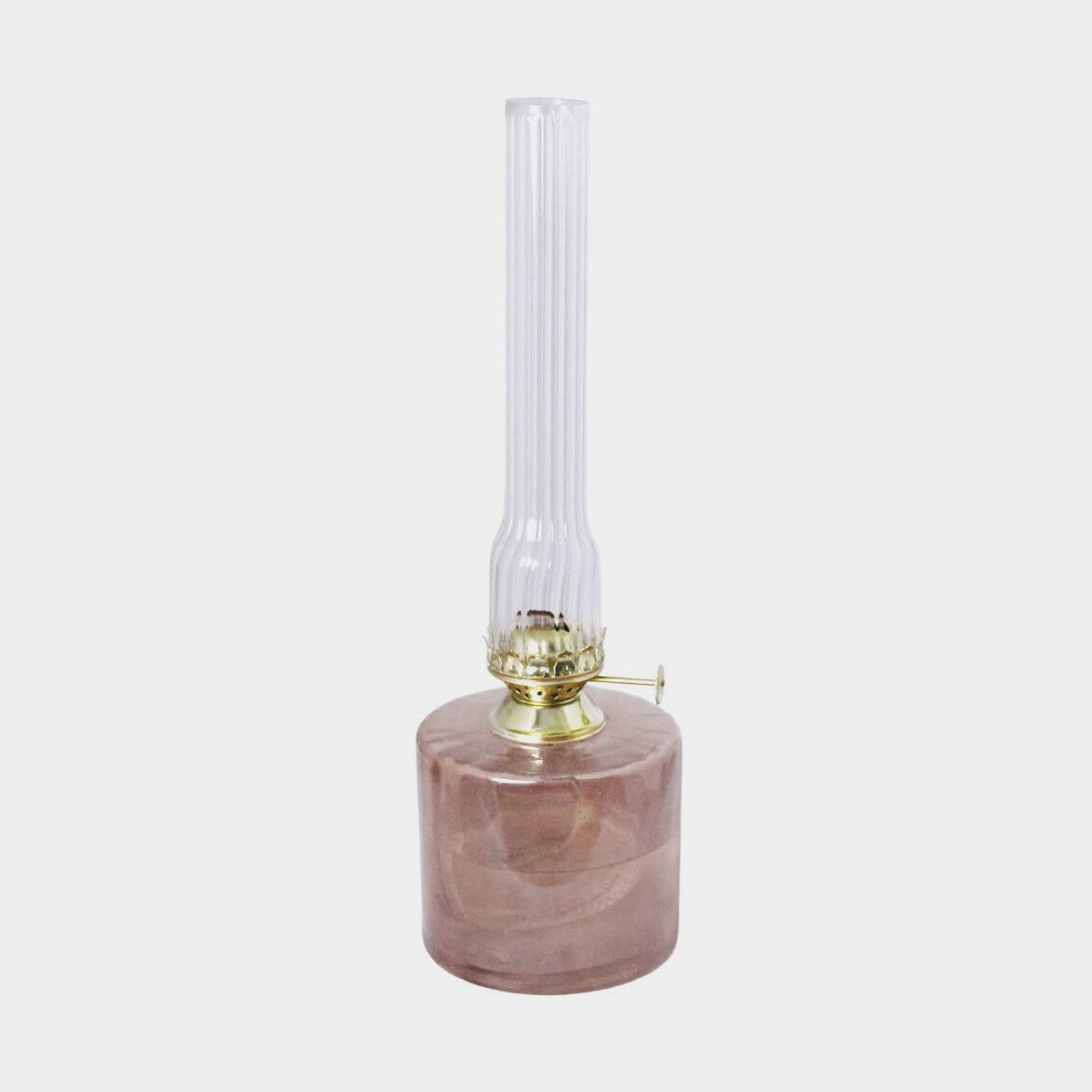 Fotogenlampa / oljelampa Strömshaga Elvira Stor, askrosa glas, brännare i mässing, Ø100 mm x 325 mm