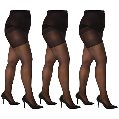 WAJIAFAR 3 strumpbyxor för kvinnor, stora storlekar, transparenta strumpbyxor med kontrolltopp och förstärkta tår, svart, XXL plus size