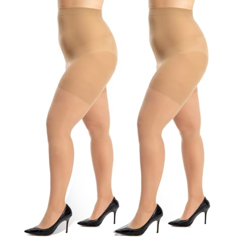 RubyRunk 2 par genomskinliga strumpbyxor i plus size för kvinnor 20D, XL-4XL damer hög midja kontroll topp strumpbyxor med förstärkta tår, NAKEN, XL Stor