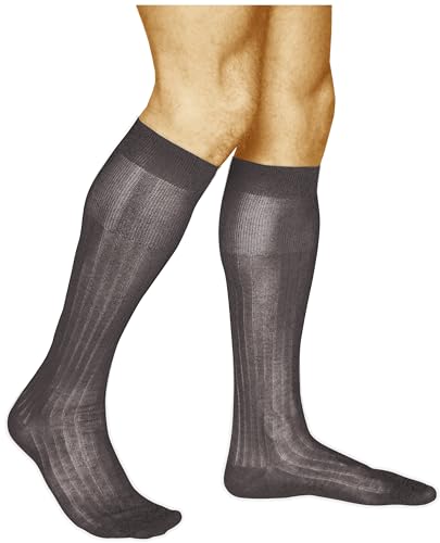 VITSOCKS Tunna Knästrumpor Herr, 100% BOMULL Premium (2 PAR) Ribbade Eleganta Höga Strumpor, grå, 42-43