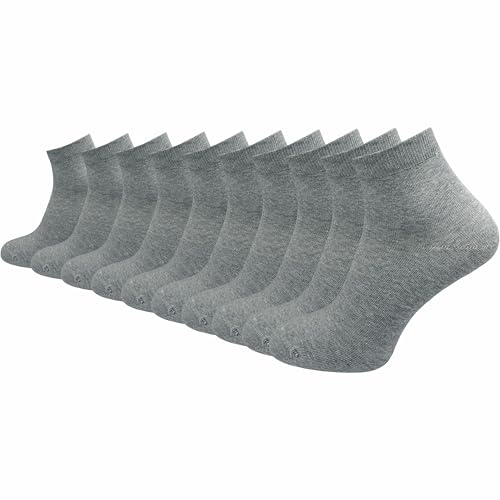 GAWILO Kvartsstrumpor för män av 100 % ren bomull (6 par | 10 par) | Korta och tunna strumpor | utan tryckande söm över tårna, grå | 10 par, 39-42 EU