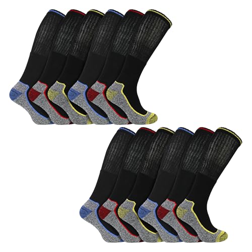 Strumpa snobb herr knähöga strumpor för stål tå stövlar anti-svett andningsbara tunga bambu arbetsstrumpor, 12 pack, 40-45 EU