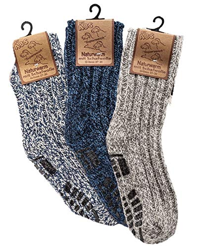 krautwear barn pojkar flickor strumpor varma norska strumpor varma vinterstrumpor hemmastrumpor med halkskydd ABS tryck med ull 3-pack, Blå-grå, 27-30