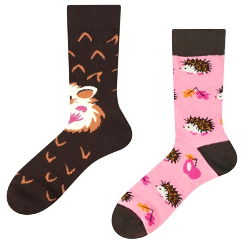 Vicloon Fantasy Rigolote-strumpor, unisex strumpor intressanta färgglada roliga excentriska excentriska mönster vänster höger mönster för herr dam gåva, Igelkott - 39-42, Medium
