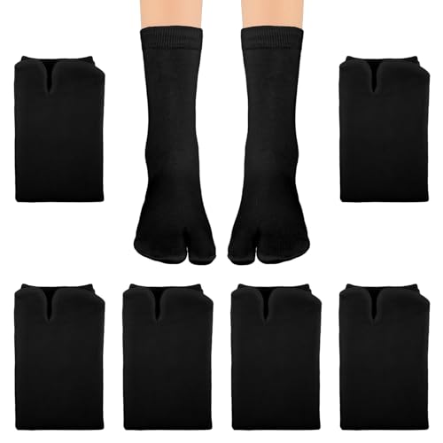 KALIONE 6 par flip-flop-strumpor, delade tåstrumpor, elastiska Tabi-strumpor, unisex, bomull, delade tåstrumpor, elastiska strumpor för kvinnor och män, svart, 10-12