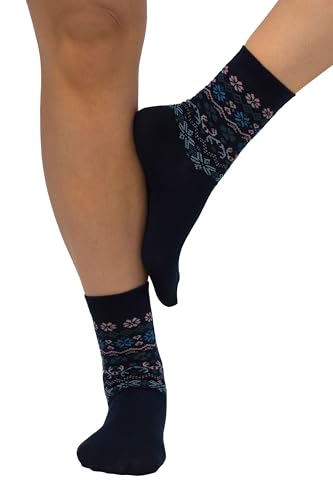 Ulla popkar, kvinnor, stora storlekar, strumpor, norskt tryck i skaft, Midnattblå