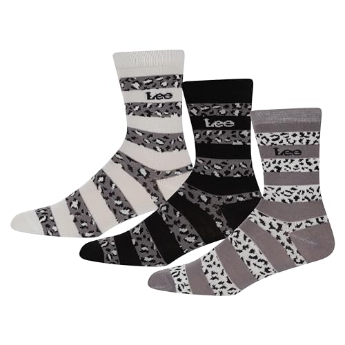 Lee Dam smarta crew-strumpor med djurränder | Lågt vaddesigner klänning strumpa fritidskläder besättning | ultramjuk andningsbar viskos från bambu | Storlek 4-7 multipack med 3, Ecru/Svart/Grå med