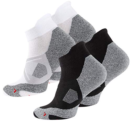 STARK SOUL Quarter Performance sportstrumpor, funktionella strumpor för kvinnor och män (2 par), löpning, jogging, cykling, fitness, triathlon, vandring, svart, vit, svart/grå, 39-42 EU