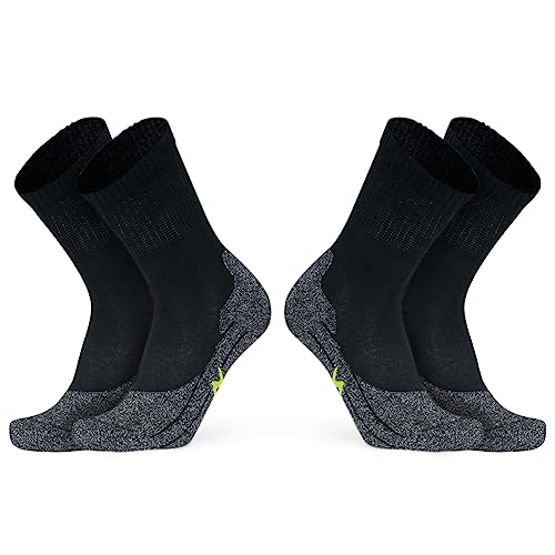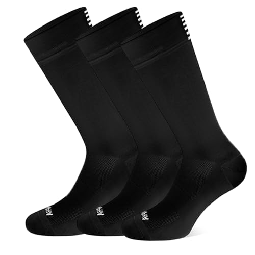 LIFE ESSENTIALS 3 Par Hög Cykling Strumpor för Män Teknik Andningsbara, Vadderade, Halkfria Fiber Unisex Cyklister för vandring, vandring, Klättring, Cykling, Svart, 39-45 EU