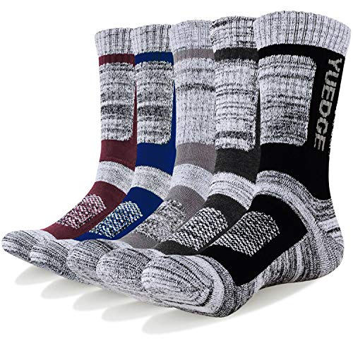 YUEDGE herr 5 par atletiska strumpor andningsdyna bekväma avslappnade besättningsstrumpor prestanda multivickande träningsportsstrumpor för utomhusrekreation vandringsklättring camping vandring