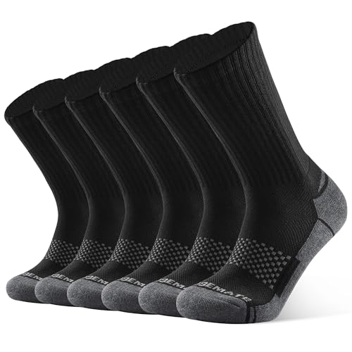 Closemate Crew Strumpor Herr 6 Par Frottésula Bomull Löparsockor Friluftsstrumpor Vandringsockor Torkande och värmande Vandring Arbete Vandring Kondition(6 Svart Grå, Storlek M)