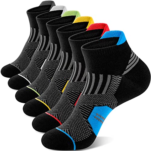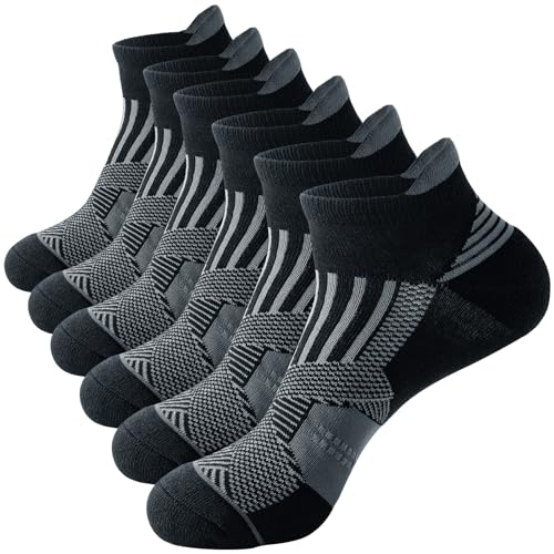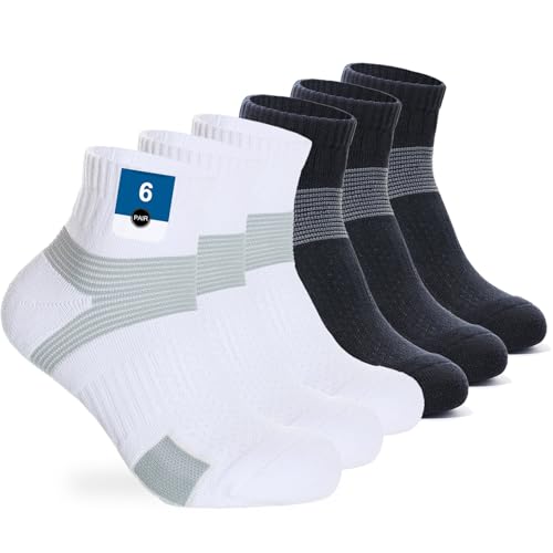 Niofind Ankelstrumpor för Män, 6 Par Korta Bomullsstrumpor som Andas, Träningsstrumpor för Män och Kvinnor, Vadderade Sportstrumpor, Atletiska Strumpor för Löpning, Vandring, Cykling, Promenader
