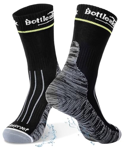 TOURGO Vattentäta strumpor män kvinnor, merinoull vattentäta termiska strumpor män, löpning vandring cykling kajakpaddling, Svart, 43.5-45 EU