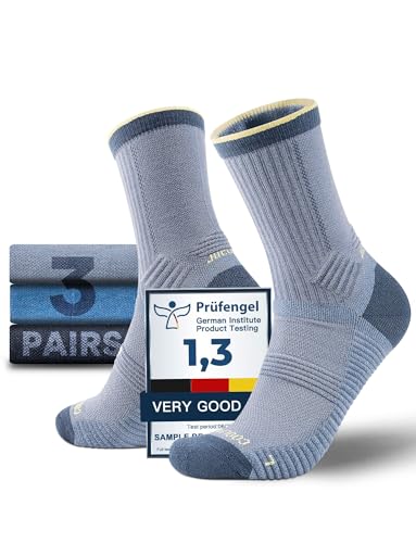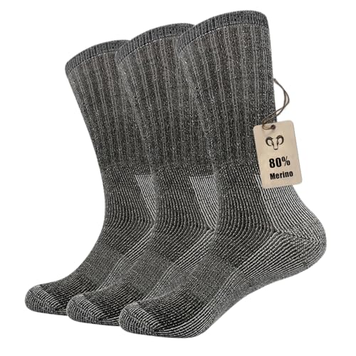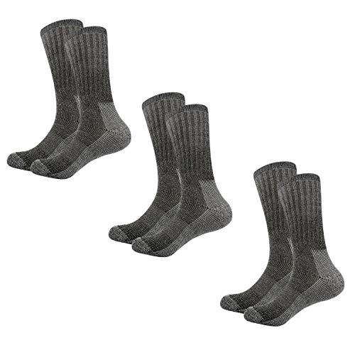 Vihir 3-pack termostrumpor för män, 80 % merinoull, vadstrumpor för vandring, strumpor, crew-strumpor för skidåkning, vandring (brun, 7,5–10,5, Grå-3, 40-43 EU
