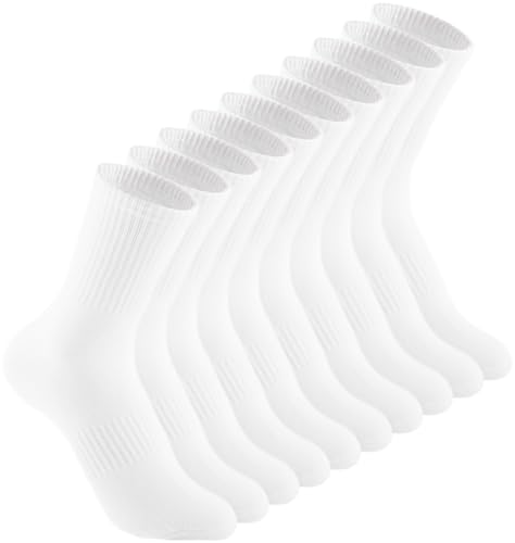 Irisbear Kudde Crew Strumpor för kvinnor Bomull Löpning Vandring Atletisk Långa strumpor för Kvinnor 5 Par, Vitt, 5-9