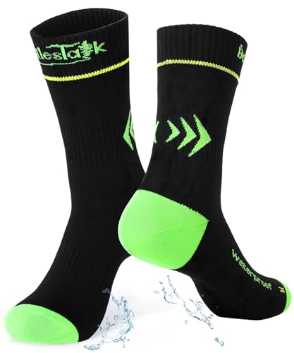 TOURGO Vattentäta strumpor för män och kvinnor, vattentäta löparstrumpor, vandring cykling kajakpaddling CoolMax & andningsbara, Svart/grön, 43.5-45 EU