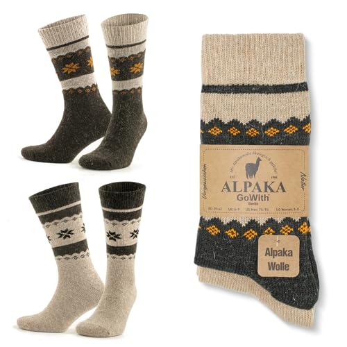 GoWith alpacka ullstrumpor för män och kvinnor, unisex termiska strumpor för vandring, arbete, utomhus, modell: 3097, 2 par, Beige/Brun - 2 Par (Modell: 3097), 41.5-43.5 EU