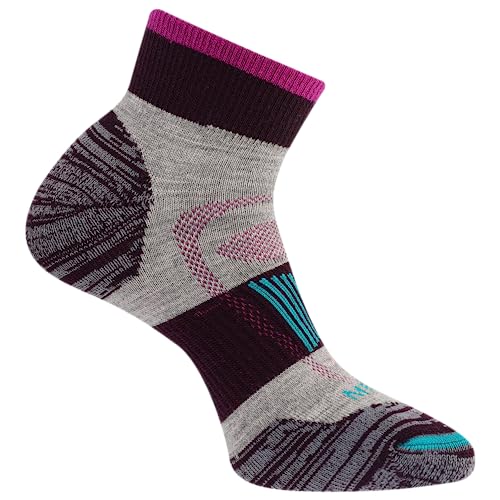 Merrell Vadderade strumpor i ull för vandring, 1 par, ventilerande vandringsstrumpor med fotvalvsstöd, Vinröd, Small-Medium
