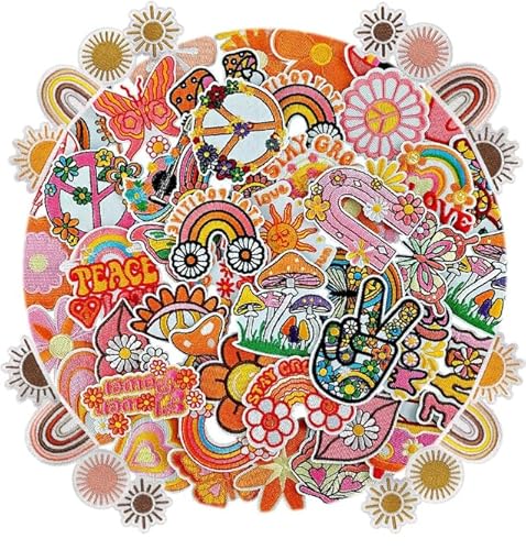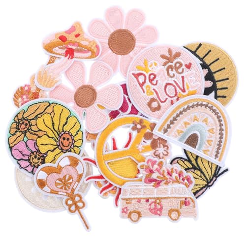 Förpackning med 20 stryka på hippie-galgar klistermärken retro broderade lappar stryka på lappar barn bokstäver att sy på med 6-färgade syset för ryggsäckar, jeans, jackor och kläder gör-det-själv