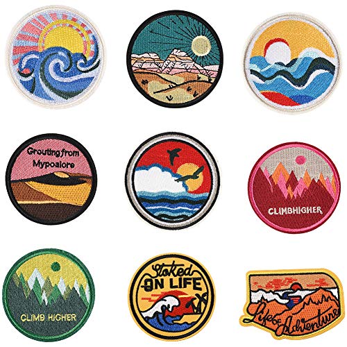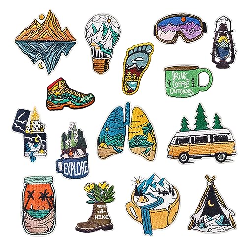 15 st. patchar lappar att stryka på tillbehör gör-det-själv berg och flödesmönster dator klistermärke i liggande format i standardfärg för jackor, jeans, byxor, ryggsäckar, kläder