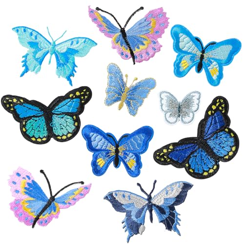 Molain 10 stycken fjärilslappar att stryka på, stryklappar fjärilar lappar lappar fjärilar applikationer strykbilder för jeans, jackor, barnkläder, väska, mössor