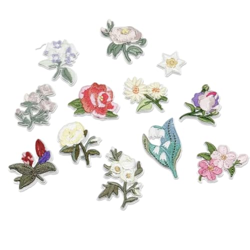 12 stycken patchar att stryka på blommor, broderade lappar, stryklappar, högkvalitativa broderade stryklappar för kläder, jeans, jackor, väskor – olika blommotiv, lätt att applicera
