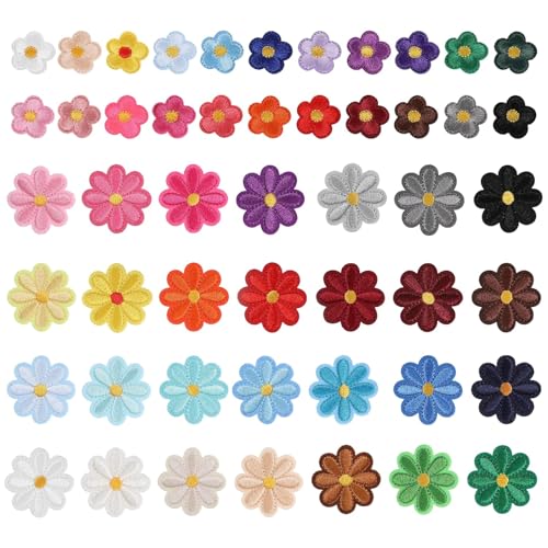 Tygmärke för att stryka, 50 stycken tusenskönor lappar att stryka på tygblommor för gör-det-själv-dekoration, t-shirt, jeans, jackor, hattar, ryggsäckar