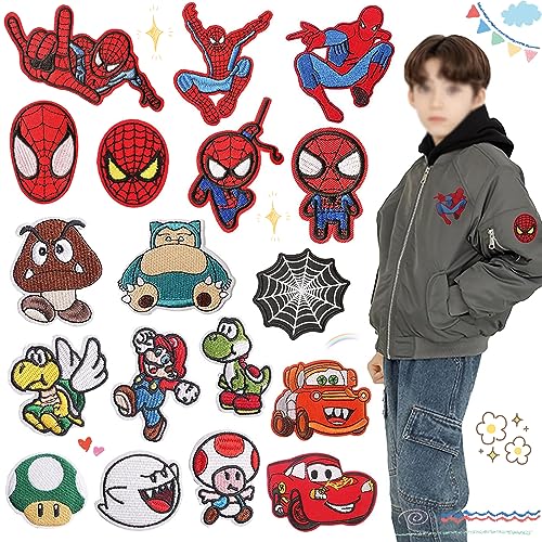 18 stycken patchar att stryka, lappar att stryka på barn, lappar att stryka på tecknad film, textilier strykning, videospel broderade lappar för kläder, för pojkar, barn, gör-det-själv-ryggsäck