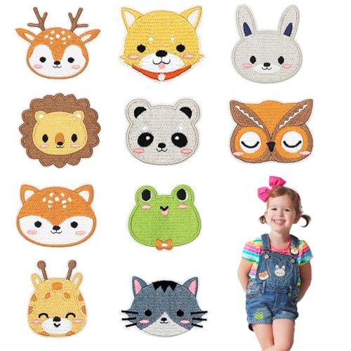 YALiya 10 stycken stryklappar för barn, lappar att stryka, stryka på barn, patchar för strykning, gör-det-själv-strykmärken för byxor, jeans, t-shirts och textilier (djurstil)