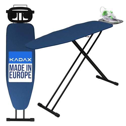 KADAX Strykbräda, 120 x 38 cm fällbart strykbord, höj- och sänkbart ångstrykbord, ångstrykbräda med halkfria fötter, bord med 8 mm skumunderlag (mörkblå)