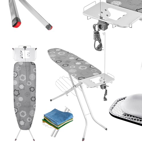 Rayen | Strykbräda - Bassortiment | Justerbar höjd | Metallnät | Strykstöd | Grå ram och vitt tryckt överdrag | Mått: 120 x 38 cm