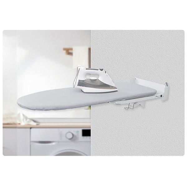 Vägghängd strykbräda i kolfiberstål med bomullsöverdrag och förvaring