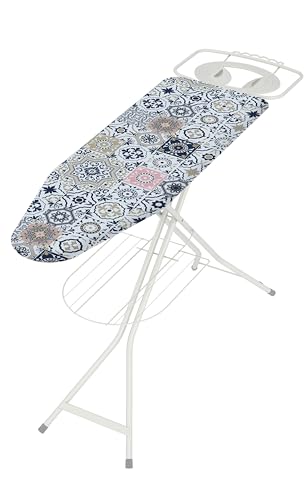 COLOMBO Stella | Hopfällbar och justerbar strykbräda 6 positioner | Golv 120 x 40 cm | Bordsskydd av ekologisk bomull | Slitstark pannhållare 10 kg förstärkt tvättkorg, stabil | Tillverkad i Italien