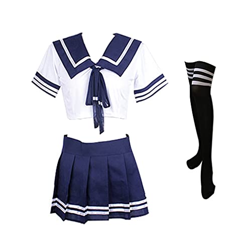 SINMIUANIME Sexig skolflickdräkt för student – kort seglaruniform – söta underkläder (7962 vit)