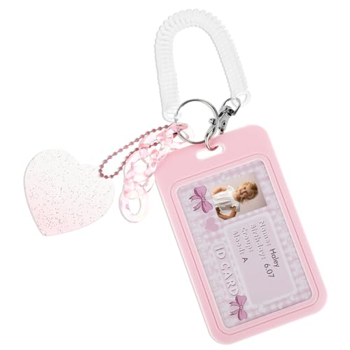 Amaxiu akryl fotokorthållare, transparent kärlekshjärta kawaii ID-korthållare, söt nyckelringshänge, bankkort, busskort, student-ID-kort, ID-korthållare för flickor och kvinnor (rosa)
