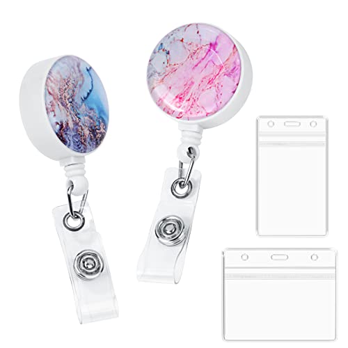Vicloon Indragbar märkeshållare, 2 st märkesrullklämmor och ID-korthållare, infällbar nyckelring, bricka hållare klämma för kontor, lärare, sjuksköterska, student, ID-kort, nyckelbricka hållare (rosa,