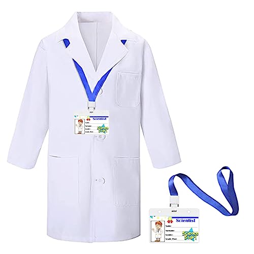 CoatCool Barn doktorsrock vit labbrock med ID-kort för barn, bomullsforskare utklädningskostymer barn vetenskap maskeraddräkt för rollspel skola student vetenskap labbrockar veterinärrock pojkar