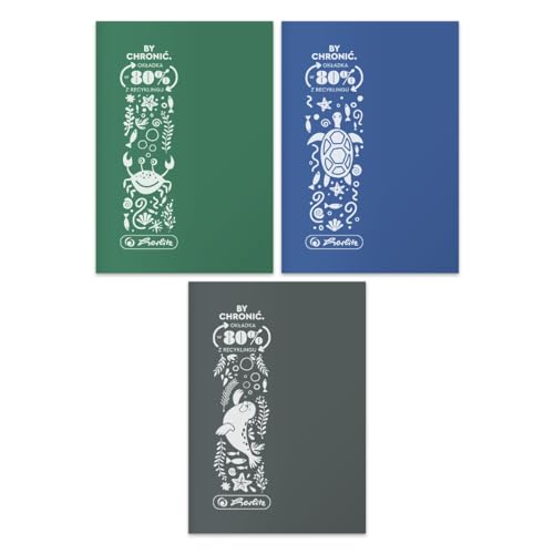 Herlitz® A5 skolbok | 32 rutiga kort 70 g, ECO PP | ämne studieanteckningar | Student skrivanteckningsblock | för lärande kalligrafi | Urvalsfärg | Ocean Colors i 3 färger