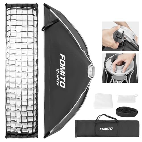 FOMITO 11,8 tum x 47 tum snabbfrigörande softbox 30 x 120 cm rektangulär Bowens-montering mjuk låda med strålgaller för fotografering studiobelysning