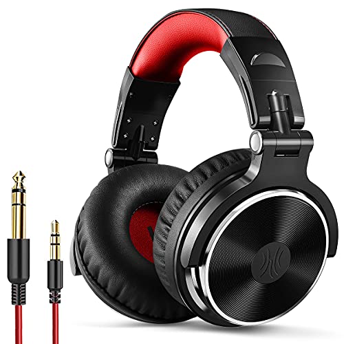 OneOdio Over Ear-hörlurar, professionella DJ-övervakningshörlurar, slutna studiohörlurar, brusisolerande hörlurar, musikhörlurar med 3,5 och 6,35 mm kontaktkabel och inbyggd mikrofon (Svart och röd)