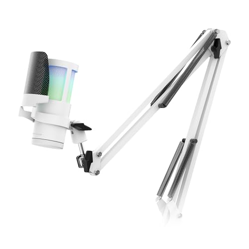 Mars Gaming MMIC-SC, Professionell Studiomikrofon, ARGB High-End Design, Högupplöst 192Khz 24-bit, Omnidirektionell Mekanisk Arm, Kontrollhjul, Metallnät-Popfilter, Vit